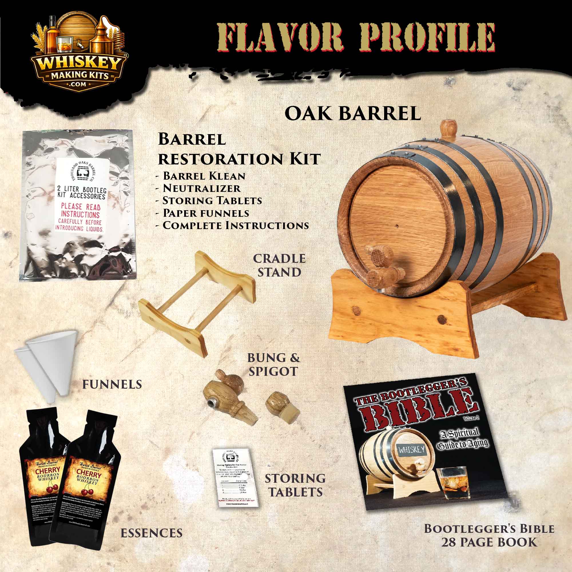 Experience the bold character of Kentucky bourbon elevated with rich, dark cherry sweetness using this premium Cherry Bourbon Whiskey Making Kit. Designed for whiskey enthusiasts, home bartenders, and craft spirit lovers, this complete oak barrel aging kit allows you to transform neutral spirits or bourbon into a smooth, fruit-forward, small-batch cherry bourbon masterpiece.
