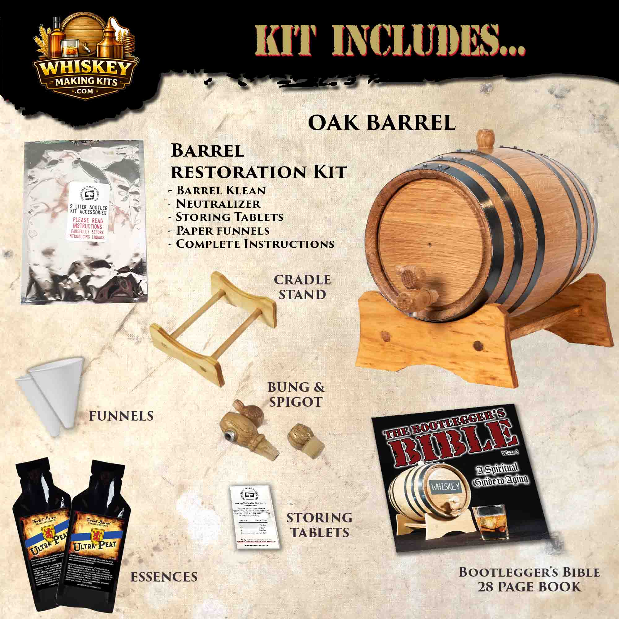 Experience bold, smoky intensity with the Ultra Peat Whisky Making Kit — a premium home whisky aging and infusion kit designed for true peat lovers. This complete DIY whisky kit allows you to craft deeply smoky, Scotch-style peated whisky at home using a handcrafted American oak aging barrel and Ultra Peat Premium Essence.